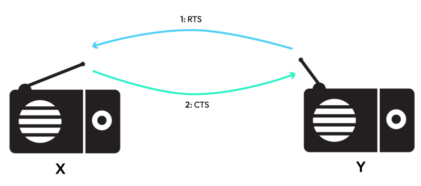 - Y responds with a response message (CTS), indicating the settings it can receive the data with. In a poor radio channel, data must be sent more slowly than in a good one.